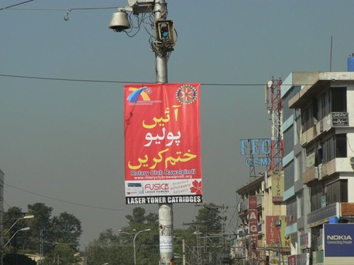 Rotary Club Rawalpindi participated in the World Polio Day Activities by displaying End Polio Now Public Awareness slogans on Banners on different roads of Rawalpindi city.