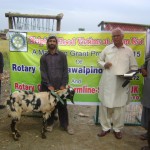 Members of Rotary Club Rawalpindi (DGN Haji Iftikhar Ahmed and Rtn. PP. Munir Ahmed) distributed goats amongst the flood affected people of Dera Kai, Aman Kot in the second phase of Matching Grant Project # 75015 being carried out by Rotary Club Dufermline, District 1010. Scotland UK & Rotary Club Rawalpindi, District 3272. Pakistan. Bags of Fertilizers, DAP and Corn were distributed in the first phase.